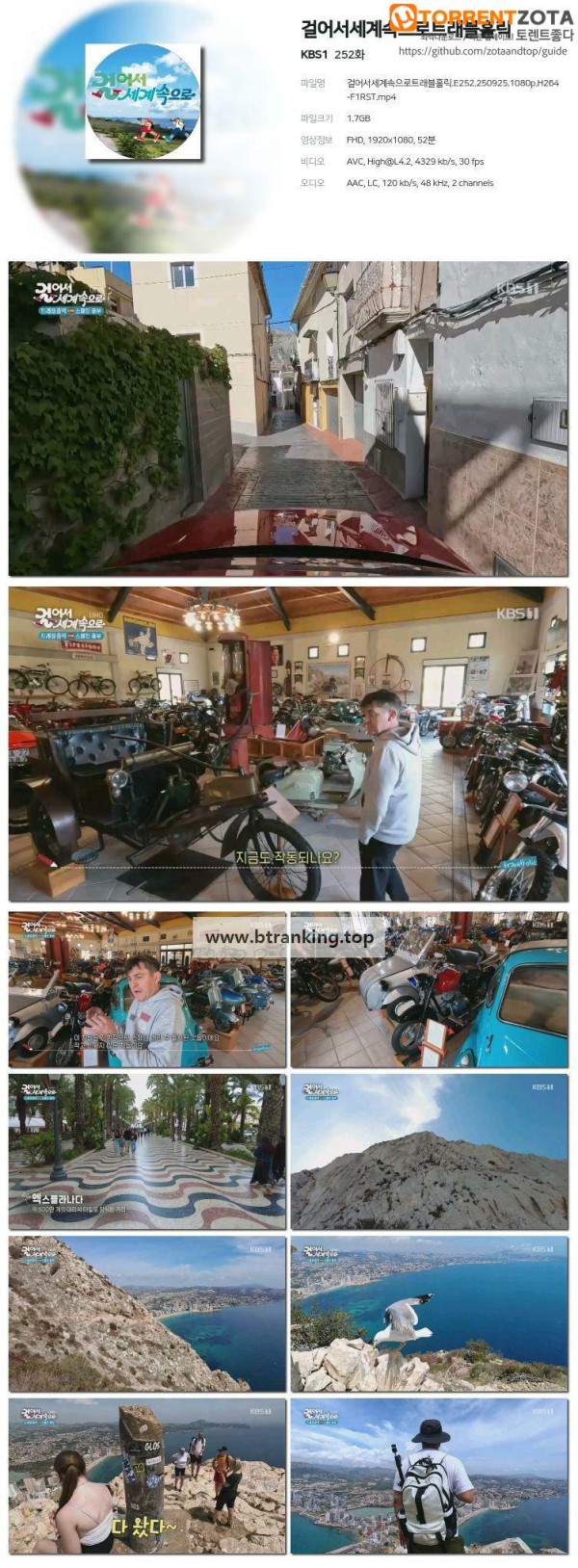 걸어서세계속으로트래블홀릭.E252.250925.1080p-F1RST 작성자 정보 admin 작성 작성일 2025.09.25 08:35 컨텐츠 정보 85 조회 목록 관련 링크 magnet:?xt=urn:btih:49e2c27c709ae3e8d5b5cade8fade153e5721ce4 52 회 연결 첨부파일 걸어서세계속으로트래블홀릭.E252.250925.1080p-F1RST.torrent 파일크기 토렌트 다운로드 2 회 다운로드 등록일 2025.09.25 08:35 본문 걸어서세계속으로트래블홀릭.E252.250925.1080p-F1RST 관련자료 이전 인간극장.E6201.250925.1080p-F1RST 작성일 2025.09.25 08:35 다음 세계테마기행.E3731.250924.오늘도 뜨거운, 아미고 멕시코 - 3부.1080p.WEB-DL.x264-SETI 작성일 2025.09.25 08:35 댓글 0 등록된 댓글이 없습니다. 로그인한 회원만 댓글 등록이 가능합니다. 목록