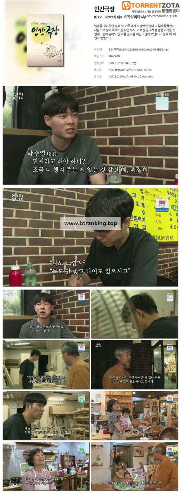 인간극장.E6201.250925.1080p-F1RST 작성자 정보 admin 작성 작성일 2025.09.25 08:35 컨텐츠 정보 79 조회 목록 관련 링크 magnet:?xt=urn:btih:c5ca6e7eca4ad8c7cd27af367a27257a9e1d7333 50 회 연결 첨부파일 인간극장.E6201.250925.1080p-F1RST.torrent 파일크기 토렌트 다운로드 1 회 다운로드 등록일 2025.09.25 08:35 본문 인간극장.E6201.250925.1080p-F1RST 관련자료 이전 2TV 생생정보.E2384.250925.720p-F1RST 작성일 2025.09.25 19:35 다음 걸어서세계속으로트래블홀릭.E252.250925.1080p-F1RST 작성일 2025.09.25 08:35 댓글 0 등록된 댓글이 없습니다. 로그인한 회원만 댓글 등록이 가능합니다. 목록