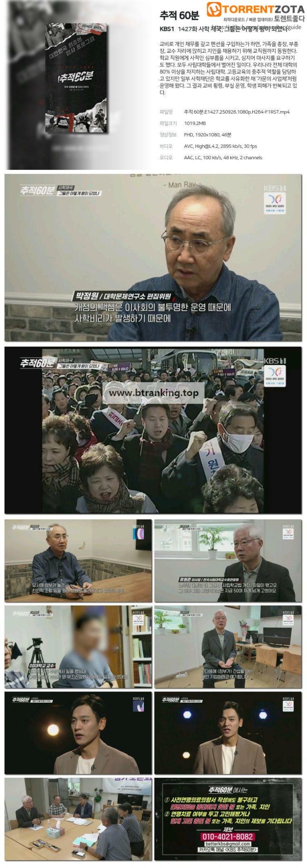 추적 60분.E1427.250926.1080p-F1RST 작성자 정보 admin 작성 작성일 2025.09.26 23:35 컨텐츠 정보 56 조회 목록 관련 링크 magnet:?xt=urn:btih:bb81209c37ca5f038b753e27b5e75a17a213004e 17 회 연결 첨부파일 추적 60분.E1427.250926.1080p-F1RST.torrent 파일크기 토렌트 다운로드 등록일 2025.09.26 23:35 본문 추적 60분.E1427.250926.1080p-F1RST 관련자료 이전 오늘부터 인생 2막.E54.250927.1080p-F1RST 작성일 2025.09.27 08:35 다음 강철지구.E47.250926.1080p-F1RST 작성일 2025.09.26 22:35 댓글 0 등록된 댓글이 없습니다. 로그인한 회원만 댓글 등록이 가능합니다. 목록
