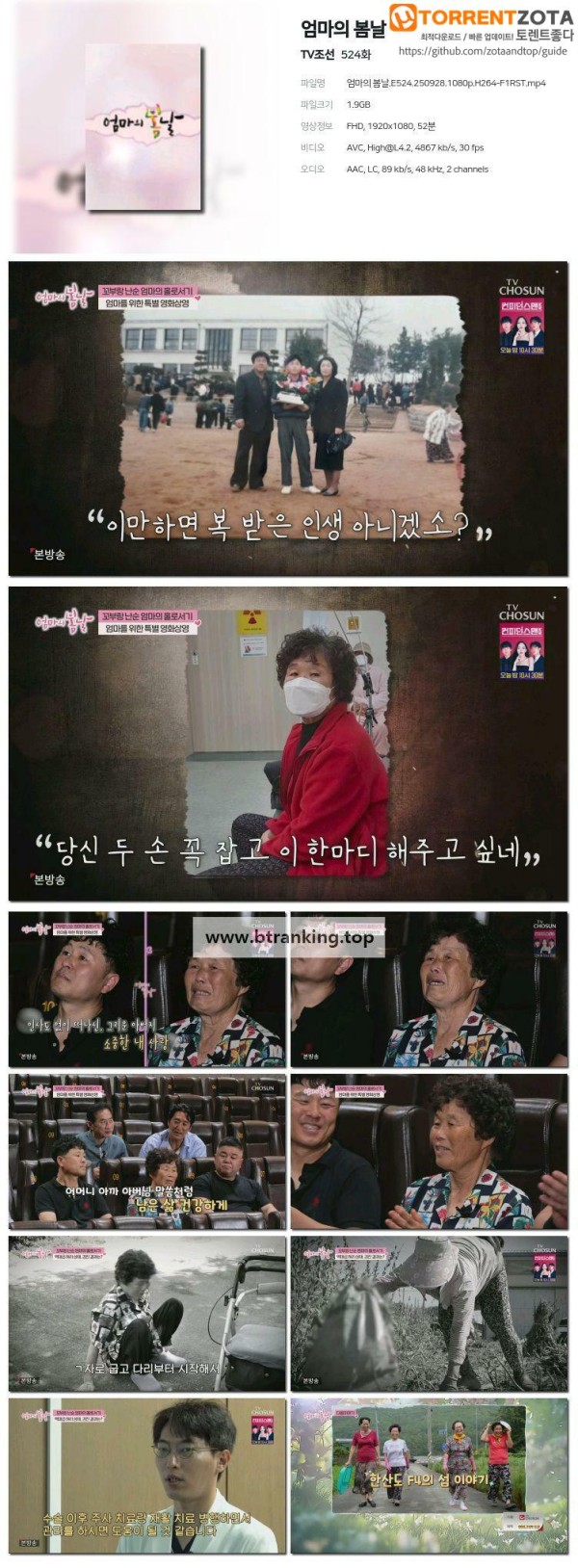 엄마의 봄날.E524.250928.1080p-F1RST 작성자 정보 admin 작성 작성일 2025.09.28 13:05 컨텐츠 정보 60 조회 목록 관련 링크 magnet:?xt=urn:btih:d062dbce4346e85701c3ec104ba697ef35b46917 27 회 연결 첨부파일 엄마의 봄날.E524.250928.1080p-F1RST.torrent 파일크기 토렌트 다운로드 등록일 2025.09.28 13:05 본문 엄마의 봄날.E524.250928.1080p-F1RST 관련자료 이전 이슈 Pick, 쌤과 함께.E249.250928.1080p-F1RST 작성일 2025.09.28 20:35 다음 TV쇼 진품명품.E1491.250928.1080p-F1RST 작성일 2025.09.28 13:05 댓글 0 등록된 댓글이 없습니다. 로그인한 회원만 댓글 등록이 가능합니다. 목록