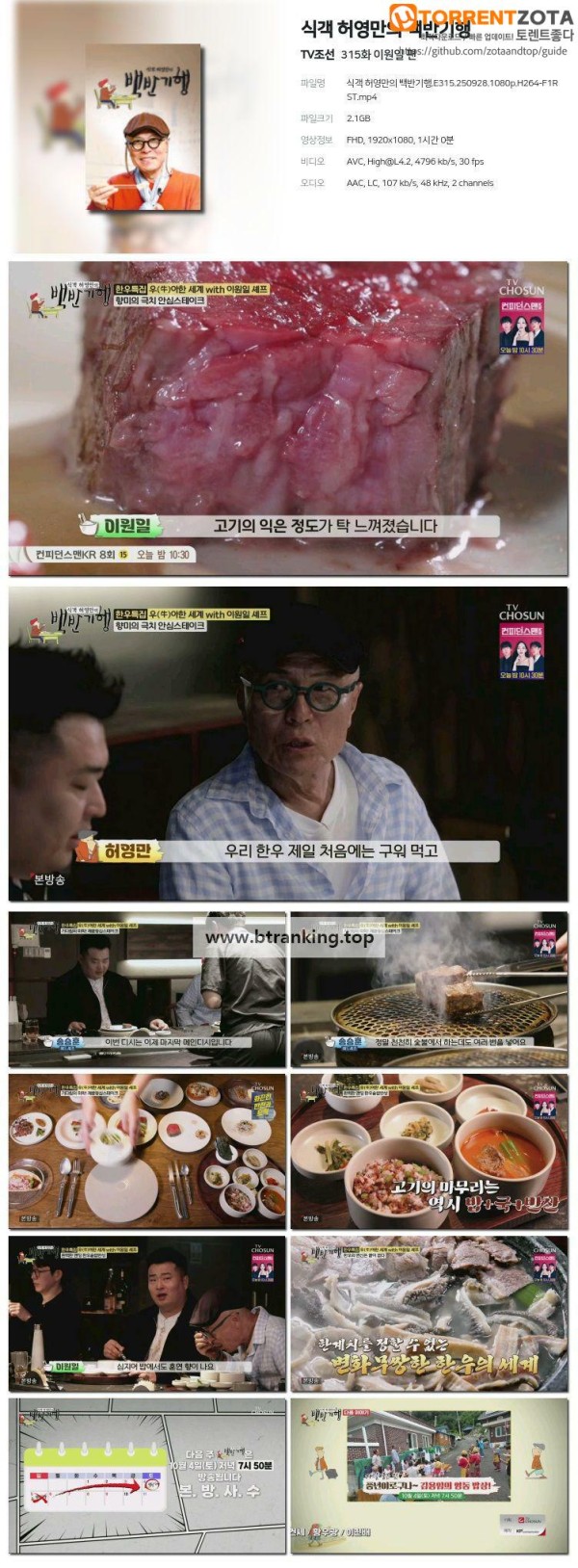 식객 허영만의 백반기행.E315.250928.1080p-F1RST 작성자 정보 admin 작성 작성일 2025.09.28 21:35 컨텐츠 정보 63 조회 목록 관련 링크 magnet:?xt=urn:btih:6553906afd668a9dba2caecbc4a5ccf8c6775c81 26 회 연결 첨부파일 식객 허영만의 백반기행.E315.250928.1080p-F1RST.torrent 파일크기 토렌트 다운로드 등록일 2025.09.28 21:35 본문 식객 허영만의 백반기행.E315.250928.1080p-F1RST 관련자료 이전 휴먼다큐 사노라면.E707.250928.1080p-F1RST 작성일 2025.09.28 21:35 다음 이슈 Pick, 쌤과 함께.E249.250928.1080p-F1RST 작성일 2025.09.28 20:35 댓글 0 등록된 댓글이 없습니다. 로그인한 회원만 댓글 등록이 가능합니다. 목록