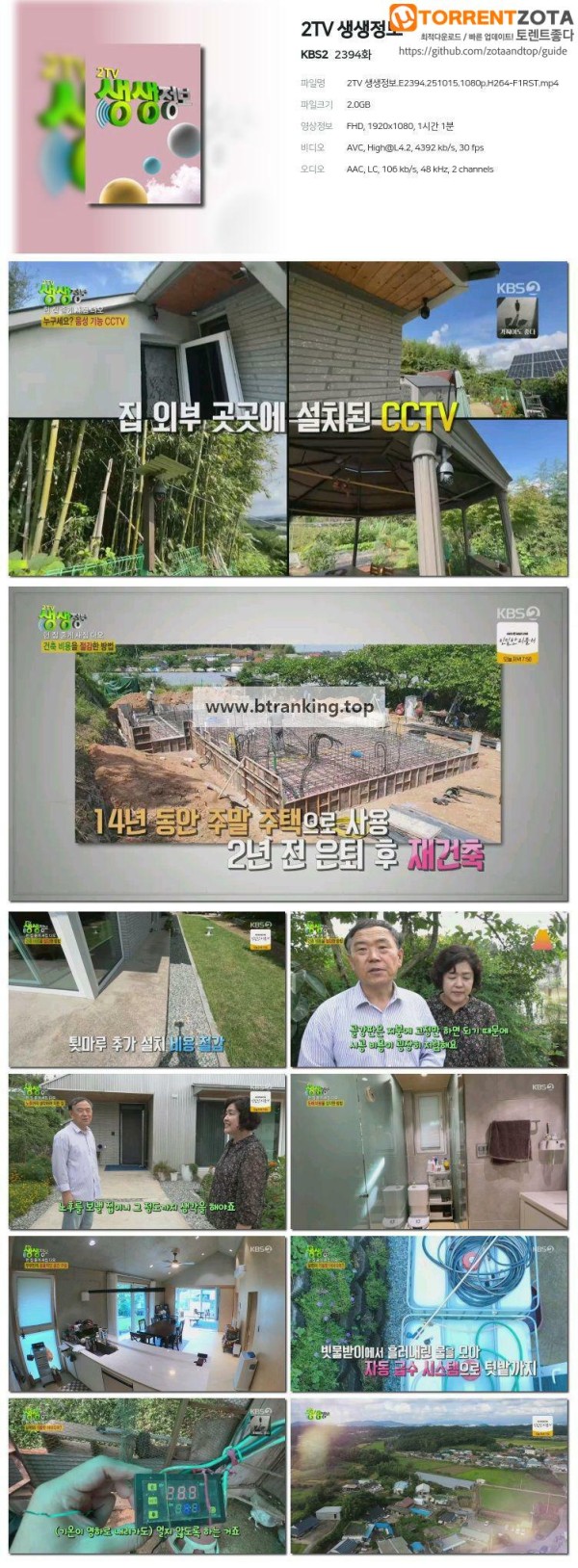 2TV 생생정보.E2394.251015.1080p-F1RST 작성자 정보 admin 작성 작성일 2025.10.15 20:35 컨텐츠 정보 55 조회 목록 관련 링크 magnet:?xt=urn:btih:0f421acdb13281422e5f68a62ee0cf8f0696bb57 27 회 연결 첨부파일 2TV 생생정보.E2394.251015.1080p-F1RST.torrent 파일크기 토렌트 다운로드 등록일 2025.10.15 20:35 본문 2TV 생생정보.E2394.251015.1080p-F1RST 관련자료 이전 일꾼의 탄생 시즌2.E17.251015.1080p-F1RST 작성일 2025.10.15 21:35 다음 세계테마기행.E3742.251014.떠나 볼까? 요즘 뜨는 슬로베니아 - 2부. 알프스와 지중해의 낭만이 그립다면.1080p.WEB-DL.x264-SETI 작성일 2025.10.15 11:35 댓글 0 등록된 댓글이 없습니다. 로그인한 회원만 댓글 등록이 가능합니다. 목록