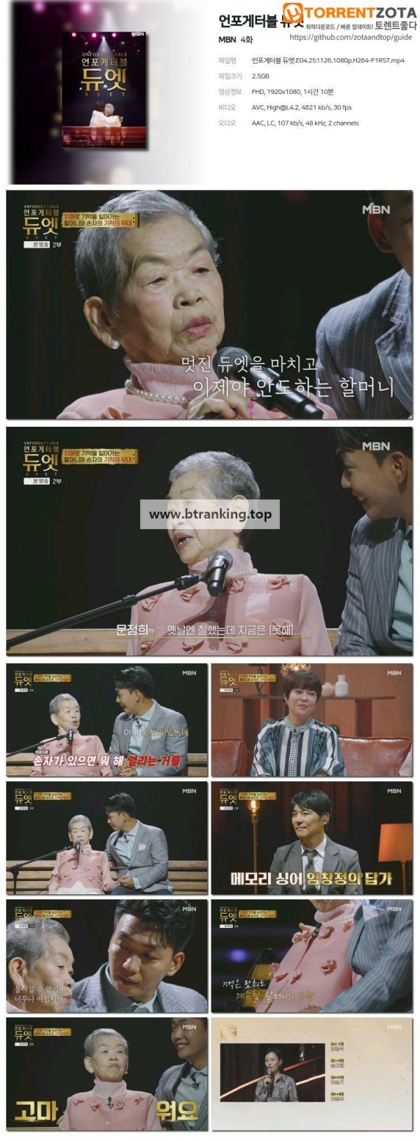 언포게터블 듀엣.E04.251126.1080p-F1RST 작성자 정보 admin 작성 작성일 2025.11.27 11:00 컨텐츠 정보 10 조회 목록 관련 링크 magnet:?xt=urn:btih:3362a0e2d71bc71ff2d802892d18ef2d7d27f676 5 회 연결 첨부파일 언포게터블 듀엣.E04.251126.1080p-F1RST.torrent 파일크기 토렌트 다운로드 등록일 2025.11.27 11:00 본문 언포게터블 듀엣.E04.251126.1080p-F1RST 관련자료 이전 잘 빠지는 연애.E04.251126.1080p-F1RST 작성일 2025.11.27 11:00 다음 2TV 생생정보.E2422.251126.720p-F1RST 작성일 2025.11.26 21:45 댓글 0 등록된 댓글이 없습니다. 로그인한 회원만 댓글 등록이 가능합니다. 목록