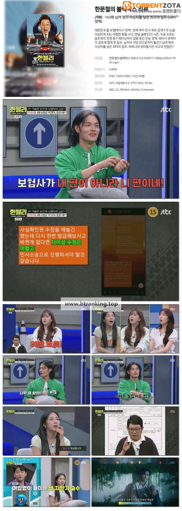 한문철의 블랙박스 리뷰.E143.250917.1080p-F1RST 작성자 정보 admin 작성 작성일 2025.09.18 08:36 컨텐츠 정보 9 조회 목록 관련 링크 magnet:?xt=urn:btih:306241c6988e31225188b316ba69af0c217af660 4 회 연결 첨부파일 한문철의 블랙박스 리뷰.E143.250917.1080p-F1RST.torrent 파일크기 토렌트 다운로드 1 회 다운로드 등록일 2025.09.18 08:36 본문 한문철의 블랙박스 리뷰.E143.250917.1080p-F1RST 관련자료 이전 엠카운트다운.E906.250918.1080p-F1RST 작성일 2025.09.18 20:05 다음 요즘 남자 라이프 - 신랑수업.E181.250917.1080p-F1RST 작성일 2025.09.18 08:35 댓글 0 등록된 댓글이 없습니다. 로그인한 회원만 댓글 등록이 가능합니다. 목록