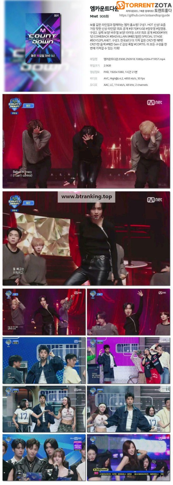 엠카운트다운.E906.250918.1080p-F1RST 작성자 정보 admin 작성 작성일 2025.09.18 20:05 컨텐츠 정보 9 조회 목록 관련 링크 magnet:?xt=urn:btih:5c49b06138a2ca6b3cead1714f67bf859b46bb42 3 회 연결 첨부파일 엠카운트다운.E906.250918.1080p-F1RST.torrent 파일크기 토렌트 다운로드 1 회 다운로드 등록일 2025.09.18 20:05 본문 엠카운트다운.E906.250918.1080p-F1RST 관련자료 이전 미친맛집 시즌3.6회.1080p.NF.WEB-DL.x264.AAC2.0-LoveBug 작성일 2025.09.18 21:05 다음 한문철의 블랙박스 리뷰.E143.250917.1080p-F1RST 작성일 2025.09.18 08:36 댓글 0 등록된 댓글이 없습니다. 로그인한 회원만 댓글 등록이 가능합니다. 목록