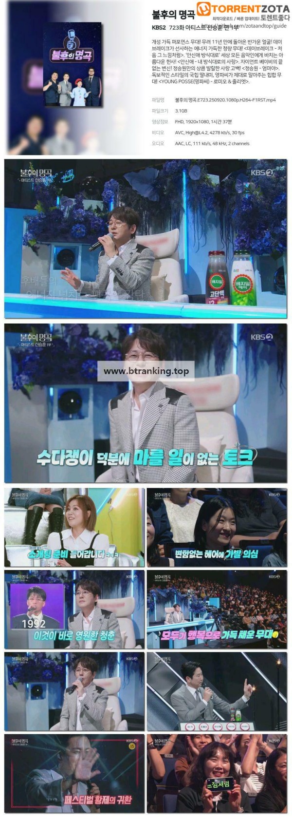 불후의 명곡.E723.250920.1080p-F1RST 작성자 정보 admin 작성 작성일 2025.09.20 21:05 컨텐츠 정보 6 조회 목록 관련 링크 magnet:?xt=urn:btih:49ee19b0e26c824e20ad4dde26edc173151b2847 1 회 연결 첨부파일 불후의 명곡.E723.250920.1080p-F1RST.torrent 파일크기 토렌트 다운로드 등록일 2025.09.20 21:05 본문 불후의 명곡.E723.250920.1080p-F1RST 관련자료 이전 직장인들 시즌2.E07.250920.이선빈.1080p.CP.WEB-DL.AAC.2.0 작성일 2025.09.20 22:05 다음 놀면 뭐하니?.E298.250920.1080p-F1RST 작성일 2025.09.20 21:05 댓글 0 등록된 댓글이 없습니다. 로그인한 회원만 댓글 등록이 가능합니다. 목록
