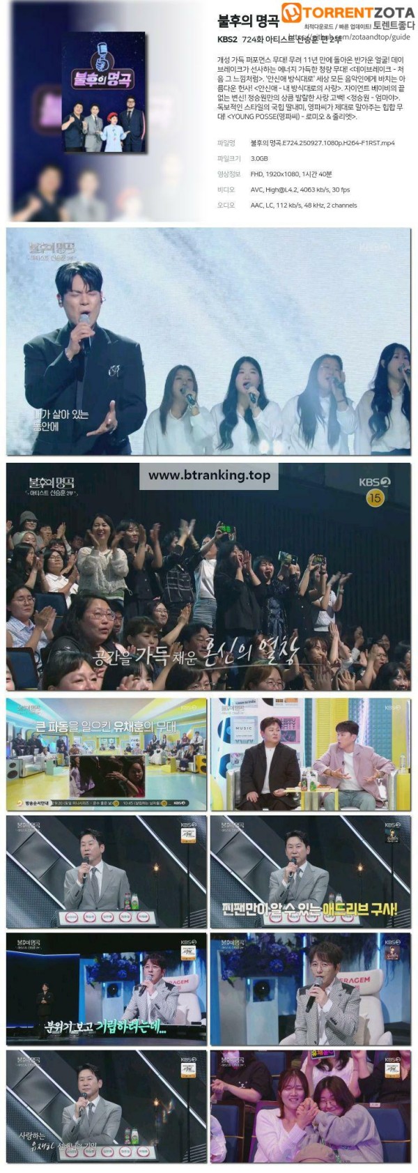 불후의 명곡.E724.250927.1080p-F1RST 작성자 정보 admin 작성 작성일 2025.09.27 21:05 컨텐츠 정보 53 조회 목록 관련 링크 magnet:?xt=urn:btih:84630ebffabce4a4931c5277ca907098005b702c 34 회 연결 첨부파일 불후의 명곡.E724.250927.1080p-F1RST.torrent 파일크기 토렌트 다운로드 1 회 다운로드 등록일 2025.09.27 21:05 본문 불후의 명곡.E724.250927.1080p-F1RST 관련자료 이전 추성훈의 밥값은 해야지.E10.250927.1080p-F1RST 작성일 2025.09.27 22:05 다음 놀면 뭐하니?.E299.250927.1080p-F1RST 작성일 2025.09.27 20:05 댓글 0 등록된 댓글이 없습니다. 로그인한 회원만 댓글 등록이 가능합니다. 목록