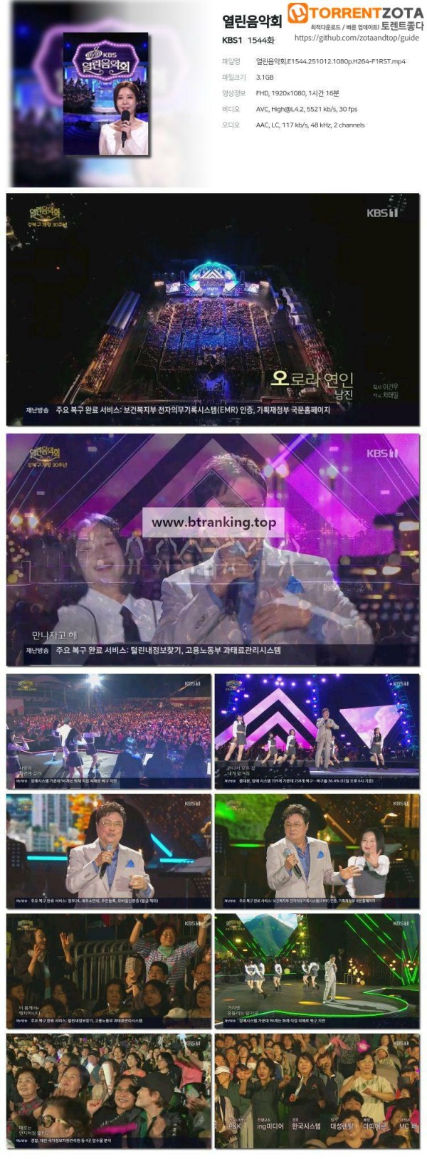 열린음악회.E1544.251012.1080p-F1RST 작성자 정보 admin 작성 작성일 2025.10.12 20:05 컨텐츠 정보 65 조회 목록 관련 링크 magnet:?xt=urn:btih:5af3066f145397c1b9dc4b72c5403caffd1f4955 34 회 연결 첨부파일 열린음악회.E1544.251012.1080p-F1RST.torrent 파일크기 토렌트 다운로드 3 회 다운로드 등록일 2025.10.12 20:05 본문 열린음악회.E1544.251012.1080p-F1RST 관련자료 이전 복면가왕.E514.251012.1080p-F1RST 작성일 2025.10.12 20:05 다음 알토란.E562.251012.1080p-F1RST 작성일 2025.10.12 19:05 댓글 0 등록된 댓글이 없습니다. 로그인한 회원만 댓글 등록이 가능합니다. 목록