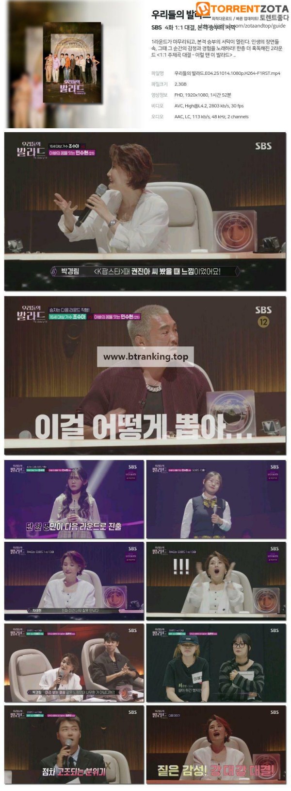 우리들의 발라드.E04.251014.1080p-F1RST 작성자 정보 admin 작성 작성일 2025.10.15 00:05 컨텐츠 정보 36 조회 목록 관련 링크 magnet:?xt=urn:btih:5fc38426bb403cddeab0e4bfcf80a97c09c531d5 28 회 연결 첨부파일 우리들의 발라드.E04.251014.1080p-F1RST.torrent 파일크기 토렌트 다운로드 등록일 2025.10.15 00:05 본문 우리들의 발라드.E04.251014.1080p-F1RST 관련자료 이전 신빨토크쇼 귀묘한 이야기.E29.251014.1080p-F1RST 작성일 2025.10.15 00:05 다음 개와 늑대의 시간.E10.251014.1080p-F1RST 작성일 2025.10.15 00:05 댓글 0 등록된 댓글이 없습니다. 로그인한 회원만 댓글 등록이 가능합니다. 목록