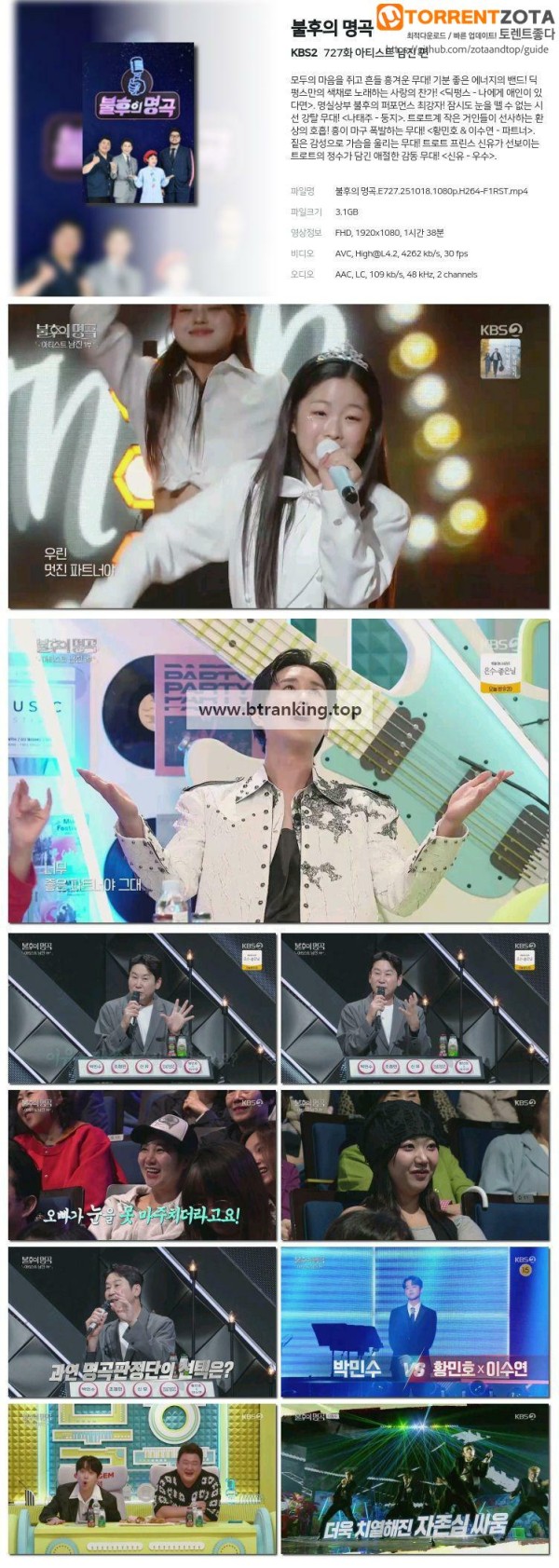 불후의 명곡.E727.251018.1080p-F1RST 작성자 정보 admin 작성 작성일 2025.10.18 20:53 컨텐츠 정보 9 조회 목록 관련 링크 magnet:?xt=urn:btih:f01c1f0575e28b203ae8304b19b563f50708609c 2 회 연결 첨부파일 불후의 명곡.E727.251018.1080p-F1RST.torrent 파일크기 토렌트 다운로드 등록일 2025.10.18 20:53 본문 불후의 명곡.E727.251018.1080p-F1RST 관련자료 이전 놀라운 토요일.E388.251018.1080p-F1RST 작성일 2025.10.18 21:53 다음 놀면 뭐하니?.E302.251018.1080p-F1RST 작성일 2025.10.18 20:53 댓글 0 등록된 댓글이 없습니다. 로그인한 회원만 댓글 등록이 가능합니다. 목록