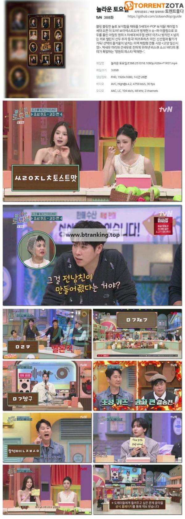 놀라운 토요일.E388.251018.1080p-F1RST 작성자 정보 admin 작성 작성일 2025.10.18 21:53 컨텐츠 정보 11 조회 목록 관련 링크 magnet:?xt=urn:btih:f6748aac9d7ea56b956e78665fc61050250dd180 1 회 연결 첨부파일 놀라운 토요일.E388.251018.1080p-F1RST.torrent 파일크기 토렌트 다운로드 등록일 2025.10.18 21:53 본문 놀라운 토요일.E388.251018.1080p-F1RST 관련자료 이전 길치라도 괜찮아.E01.251018.1080p-F1RST 작성일 2025.10.18 21:53 다음 불후의 명곡.E727.251018.1080p-F1RST 작성일 2025.10.18 20:53 댓글 0 등록된 댓글이 없습니다. 로그인한 회원만 댓글 등록이 가능합니다. 목록
