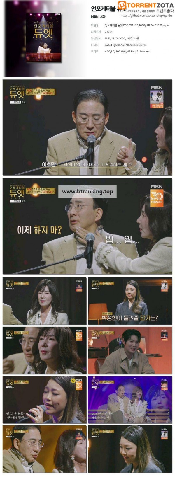 언포게터블 듀엣.E02.251112.1080p-F1RST 작성자 정보 admin 작성 작성일 2025.11.13 01:00 컨텐츠 정보 19 조회 목록 관련 링크 magnet:?xt=urn:btih:a2927068964952f9237dde1506a47a3bebecc0a8 5 회 연결 첨부파일 언포게터블 듀엣.E02.251112.1080p-F1RST.torrent 파일크기 토렌트 다운로드 등록일 2025.11.13 01:00 본문 언포게터블 듀엣.E02.251112.1080p-F1RST 관련자료 이전 잘 빠지는 연애.E02.251112.1080p-F1RST 작성일 2025.11.13 01:00 다음 한문철의 블랙박스 리뷰.E150.251112.1080p-F1RST 작성일 2025.11.13 00:00 댓글 0 등록된 댓글이 없습니다. 로그인한 회원만 댓글 등록이 가능합니다. 목록