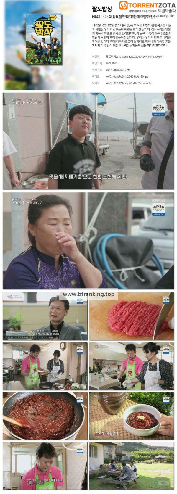 팔도밥상.E424.251122.720p-F1RST 작성자 정보 admin 작성 작성일 2025.11.22 18:12 컨텐츠 정보 12 조회 목록 첨부파일 팔도밥상.E424.251122.720p.H264-F1RST.mp4.torrent 파일크기 토렌트 다운로드 1 회 다운로드 등록일 2025.11.22 18:12 본문 팔도밥상.E424.251122.720p-F1RST 관련자료 이전 걸어서세계속으로트래블홀릭.E294.251122.720p-F1RST 작성일 2025.11.22 18:12 다음 걸어서 세계속으로.E913.251122.720p-F1RST 작성일 2025.11.22 18:12 댓글 0 등록된 댓글이 없습니다. 로그인한 회원만 댓글 등록이 가능합니다. 목록