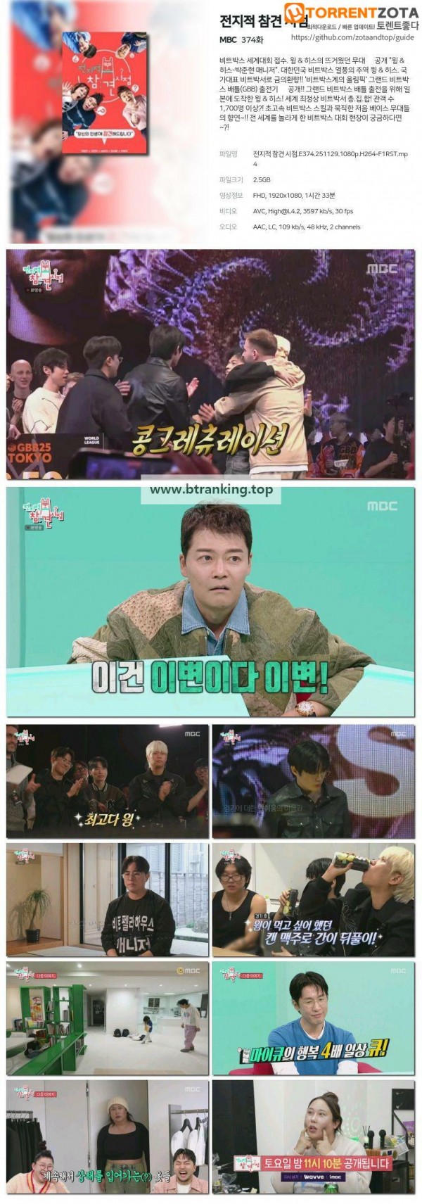 전지적 참견 시점.E374.251129.1080p-F1RST 작성자 정보 admin 작성 작성일 2025.11.30 18:45 컨텐츠 정보 3 조회 목록 첨부파일 전지적 참견 시점.E374.251129.1080p.H264-F1RST.mp4.torrent 파일크기 토렌트 다운로드 1 회 다운로드 등록일 2025.11.30 18:45 본문 전지적 참견 시점.E374.251129.1080p-F1RST 관련자료 이전 사장님 귀는 당나귀 귀.E333.251130.1080p-F1RST 작성일 2025.11.30 19:45 다음 SBS 인기가요.E1292.251130.1080p-F1RST 작성일 2025.11.30 16:45 댓글 0 등록된 댓글이 없습니다. 로그인한 회원만 댓글 등록이 가능합니다. 목록